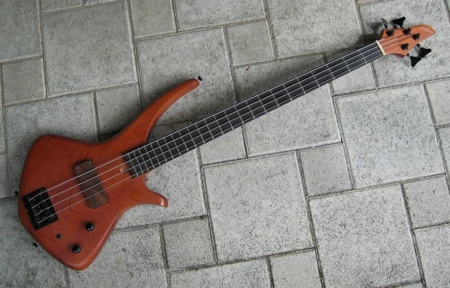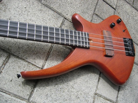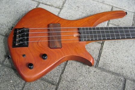 Der Korpus ist aufwändig von Hand konturiert. Gerade Flächen und Kurven wechseln sich ab und fliessen ineinander. Das Instrument hängt ausgewogen und angenehm am Körper.